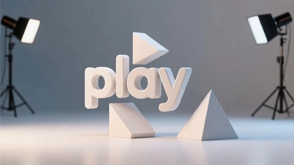 Minimalistické 3D tvary, symbol play uprostřed, čisté studio, loop…